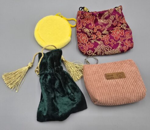 - Corduroy Coin Purses (Rectangle) – Small with key ring attachment. Made from lightweight, washable fabric. Great for crystals, keys, or headphones. Various colours